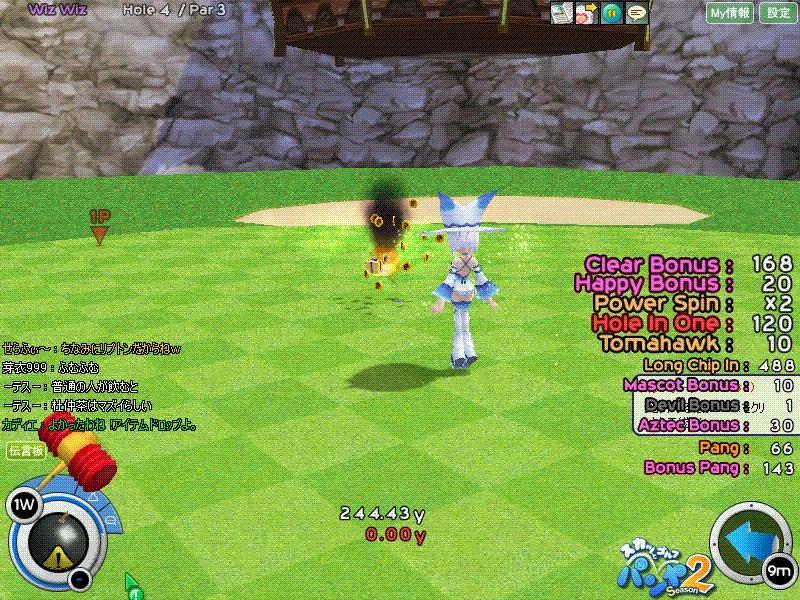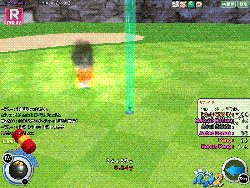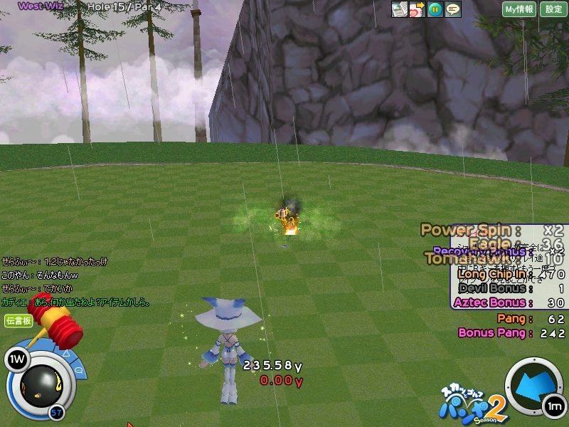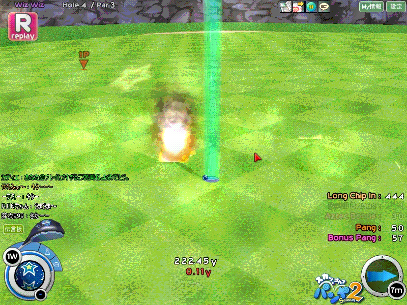 はいでました!せらふぃ~応援団の期待通りに今回もナイスショットを収めることができましたw西Wizだったとはいえ、雨+傾斜でちょっと難易度の高いショットでしたが、見事にチップインを沈めることができました( ̄ー ̄)v 私のライバル、このやんさんはええそれは非常に悔しそうでしたよ(*'‐'*) 4戦やって好プレーがこれだけだったのは残念でしたがこのやんさんに勝てればそれでよし。またの挑戦をお待ちしております~(´ー`) ウフフ