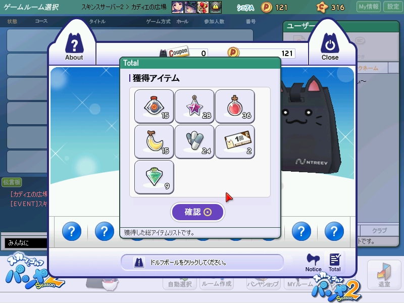 * パンヤ日記(18) * パンヤ更新情報(6) * クラブ関係(5) * PPガチャ奮闘記(4) * せらの成長過程(4) * パンヤその他(4) * HIO攻略更新♪(6) * 私的日記(3) * 未選択(0)