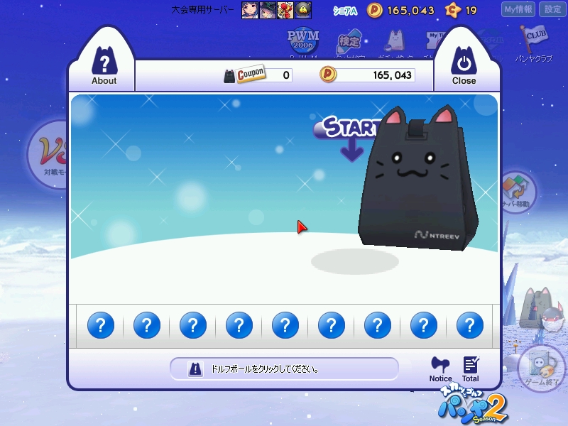 最初の画面はこんな感じです、STARTを押すと1~5個のドルフ玉がでてきて、